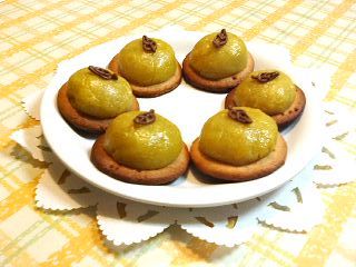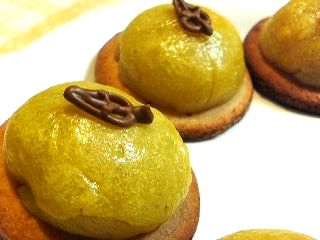 その上にスイートポテトの種のっけてこの前作ったチョコリーフのっけて完成。