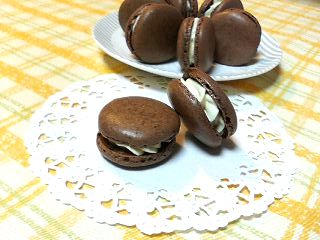 今回のマカロンは、ココアのマカロンコックに