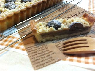 そのうちの1本、土曜日に焼いた栗のクランブルタルトです。